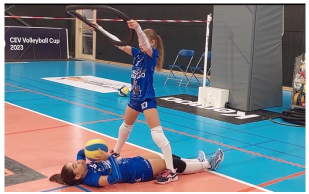 Celui qui a le ballon passe en-dessous du pont formé par les membres inférieurs du joueur, se retourne et se retrouve dans la même position qu’avant (couché dorsal) ; il se place à l’aplomb du pneu afin de pouvoir réussir la tâche avec la balle.