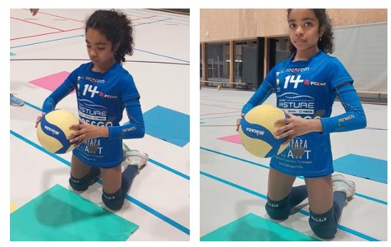 Ils font rebondir 4 fois la balle en veillant à avoir sur le ballon la position des mains qui imite une passe haute.