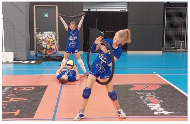 Attention, comme la position de couché dorsal est précédée par un mouvement d’avancée sur le côté du corps, il faut coordonner l’action des membres supérieurs et des membres inférieurs en continuant à vérifier que les joueurs sont bien à l’aplomb du pneu pour que les lancers de balle soient les plus verticaux possible.