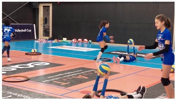 Le 3e ballon est frappé au-dessus de l’élastique mais dans l’autre partie du terrain. Le 4e ballon est frappé contre l’autre mur à l’instar du 1er ballon.