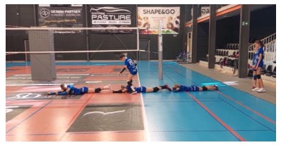 Dans cette tâche, la chronologie des actions n’est pas uniquement l’apanage des joueurs qui se déplacent, mais aussi le fait des joueurs couchés sur le sol.
