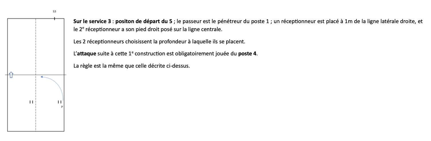 – Service 3 : position de départ au 5