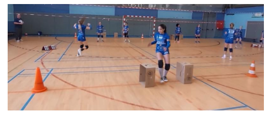 Remarque : sur la vidéo, vous ne verrez que la passe haute (qui devrait être privilégiée) même s’il est acceptable que ce soit une frappe à une main.