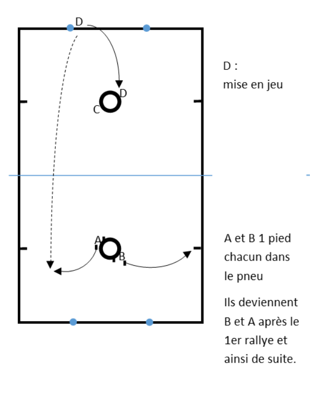 Les 2 joueurs changent simplement de place au niveau du pneu. Celui qui était devant se place donc derrière son partenaire et vice versa.